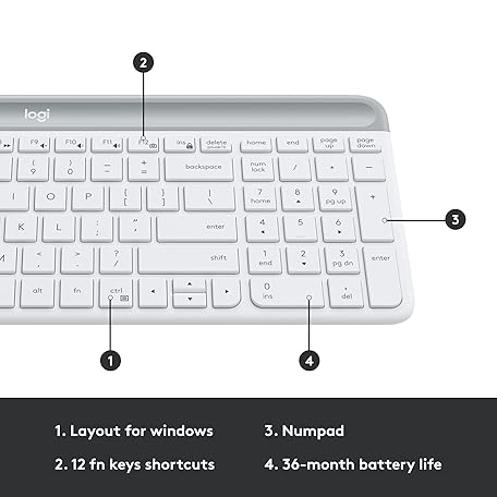 Thông tin sản phẩm Logitech MK470 Slim Wireless Keyboard and Mouse Combo - Modern Compact Layout, Ultra Quiet, 2.4 GHz USB Receiver, Plug n' Play Connectivity, Compatible with Windows - Off White