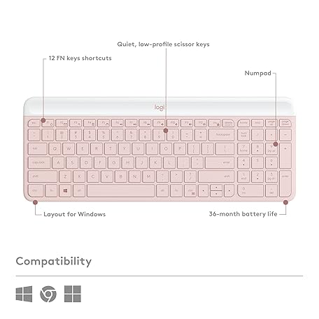 Thông tin sản phẩm Logitech MK470 Slim Wireless Keyboard and Mouse Combo - Modern Compact Layout, Ultra Quiet, 2.4 GHz USB Receiver, Plug n' Play Connectivity, Compatible with Windows - Rose