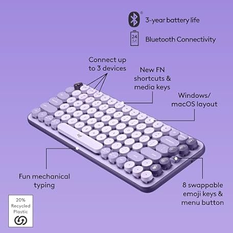 Thông tin sản phẩm Logitech POP Keys Mechanical Wireless Keyboard with Customizable Emoji Keys, Durable Compact Design, Bluetooth or USB Connectivity, Multi-Device, OS Compatible - Cosmos