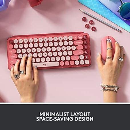 Thông tin sản phẩm Logitech POP Mechanical Wireless Keyboard with Customizable Emoji Keys, Durable Compact Design, Bluetooth or USB Connectivity, Multi-Device, OS Compatible - Heartbreaker Rose