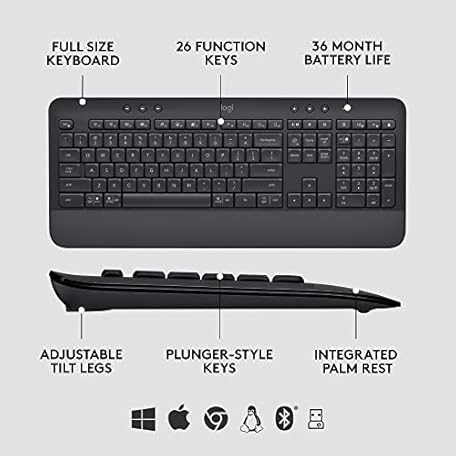 Thông tin sản phẩm Logitech Signature MK650 Combo for Business, Wireless Mouse and Keyboard, Logi Bolt, Bluetooth, SmartWheel, Globally Certified, Windows/Mac/Chrome/Linux - Graphite