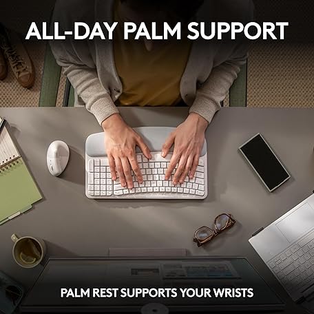Thông tin sản phẩm Logitech Wave Keys Wireless Ergonomic Keyboard with Cushioned Palm Rest, Comfortable Natural Typing, Easy-Switch, Bluetooth, Logi Bolt Receiver, for Multi-OS, Windows/Mac - Off White