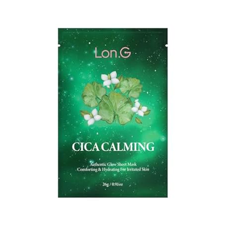 • LON.G Cica Calming Authentic Glow Sheet Mask - Skin Soothing for Sensitive Blemish Troubled skin, Heartleaf, centella asiatica extract, hydration, skin barrier, Korean skincare, 10 sheets/0.7 oz