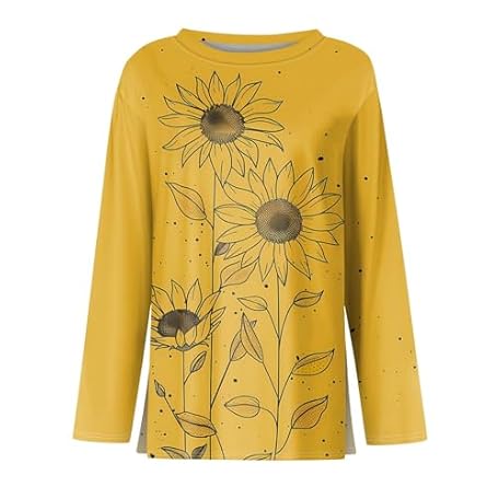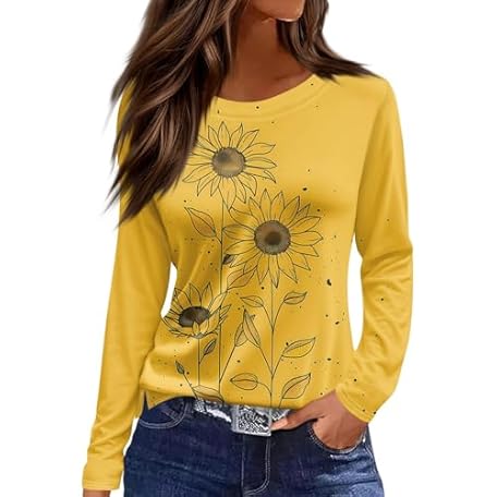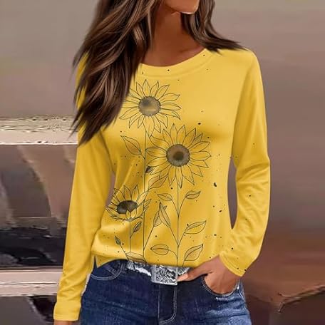 • Long Sleeve Shirts for Women 2025 Fall Fashion Basic Trendy Crew Neck Floral Printed Casual Tops