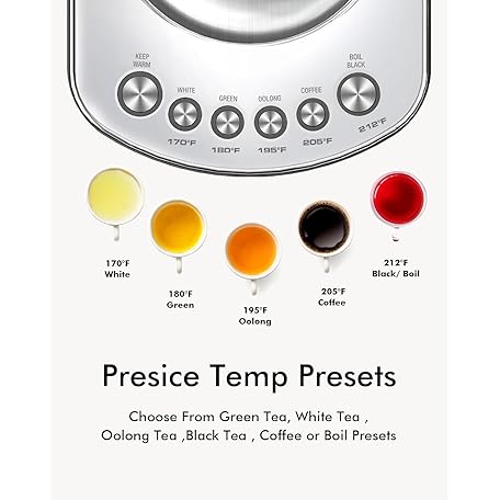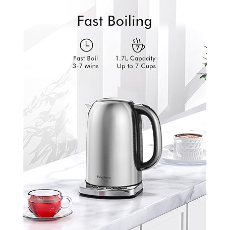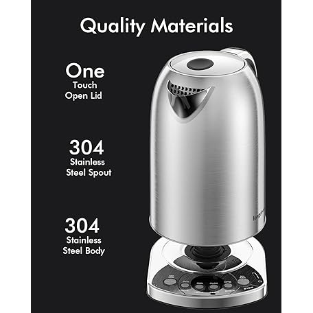 Thông tin sản phẩm Longdeem Temp Control Electric Tea Kettle, 1.7L Stainless Steel Water Boiler & Heater, Fast Boiling 1500 Watts, Cordless Kettle with Auto Shutoff, BoilDry Protection, LED Light, Silver