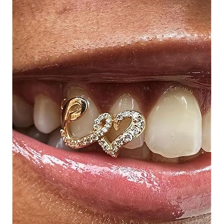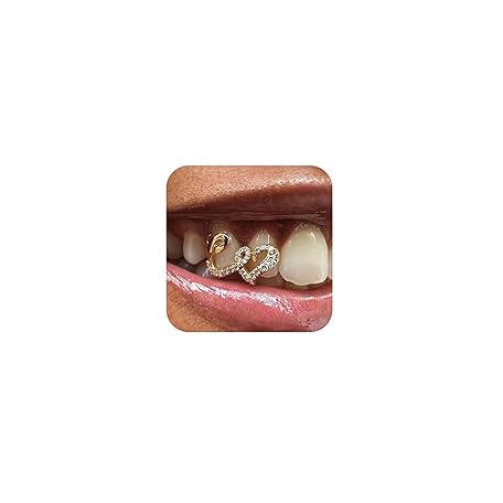 Longita Gold Grills for Your Teeth Grillz for Women Men Gold Tooth Cap Teeth Grillz for Women Golden Tooth Jewelry Hollow Out Heart Mouth Grills Men Hip Hop Outfits Custom Accessory Halloween Party