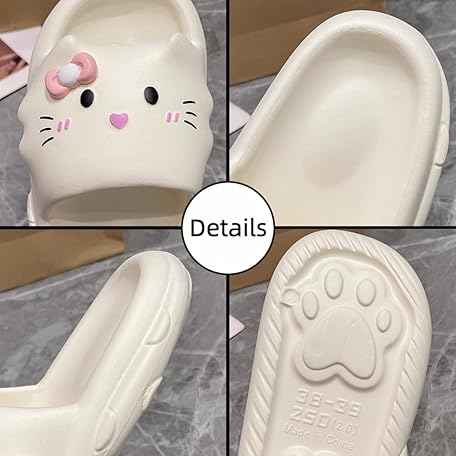 • LONGSILVER Cat Slippers Women Cute Kitty Pillow Slides Thick Sole Kawaii Non Slip Quick Drying Preppy Shower Bathroom Sandals Outdoor