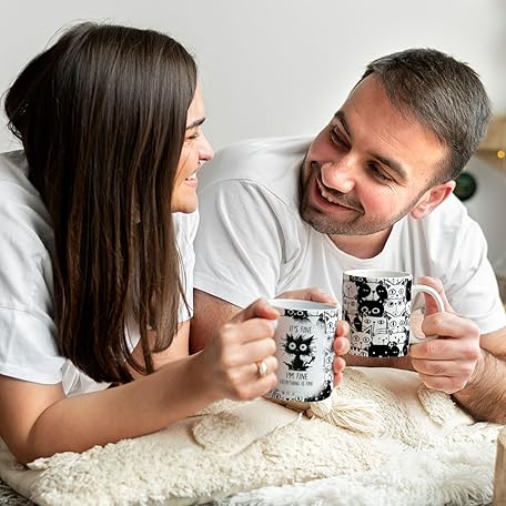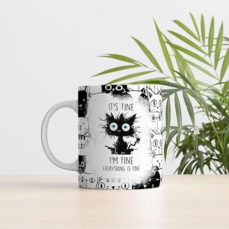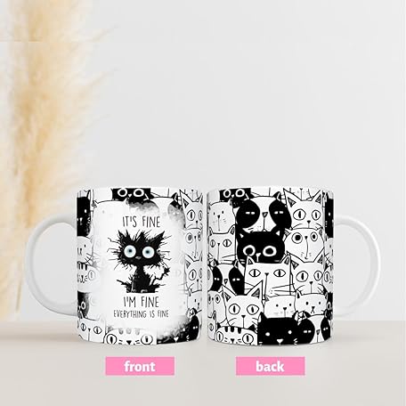 Thông tin sản phẩm LONGXIN Cat Lover Gifts, Funny Black Cat Mug, Everything Is Fine Cat Mug, Birthday Christmas Gifts for Cat Mom, Crazy Cat Halloween Gifts, 11 Oz Coffee Mug Cup