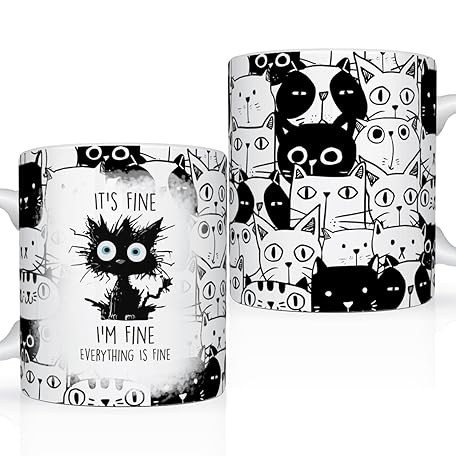 Sản phẩm LONGXIN Cat Lover Gifts, Funny Black Cat Mug, Everything Is Fine Cat Mug, Birthday Christmas Gifts for Cat Mom, Crazy Cat Halloween Gifts, 11 Oz Coffee Mug Cup đang được bán với giá ưu đãi là $9.2541 tại nước Mỹ.