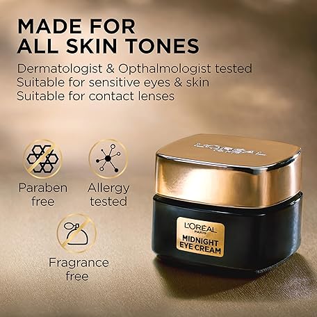 Thông tin sản phẩm L'Oreal Paris Age Perfect Cell Renewal Midnight Eye Cream, Antioxidant-Rich Under Eye Cream to Treat 8 Signs of Aging, Includes Night Cream Sample