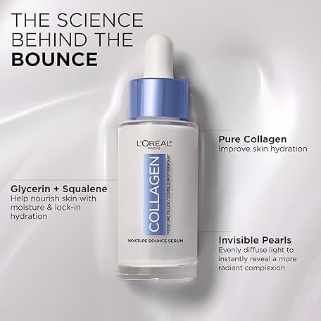 Thông tin sản phẩm L'Oreal Paris Collagen Moisture Filler Moisture Bounce Face Serum, Glow Serum with Collagen, Glycerin, and Squalane for Bouncy, Radiant, Hydrated Skin