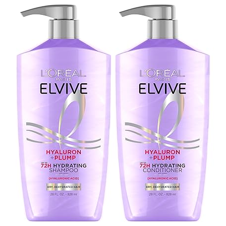 Thông tin sản phẩm L'Oreal Paris Elvive Hyaluron Plump Shampoo and Conditioner Set for Dehydrated, Dry Hair with Hyaluronic Acid Care Complex, 1 Kit (2 Products)
