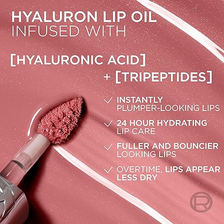 Thông tin sản phẩm L'Oreal Paris Plump Ambition Hyaluron Lip Oil, 24 HR Lip Gloss with Hyaluronic Acid, Volumizing Formula with Glass-Like Shine, Worth It 601, 0.16 Fl Oz
