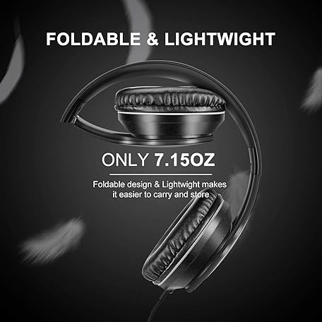 Thông tin sản phẩm LORELEI X6 Over-Ear Wired Stereo Bass Headphones with Microphone, Lightweight, Foldable & Portable with 1.45M No-Tangle for Smartphone, Tablet, MP3/4, Space Black