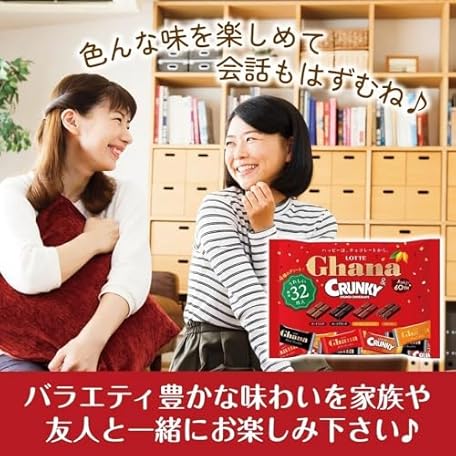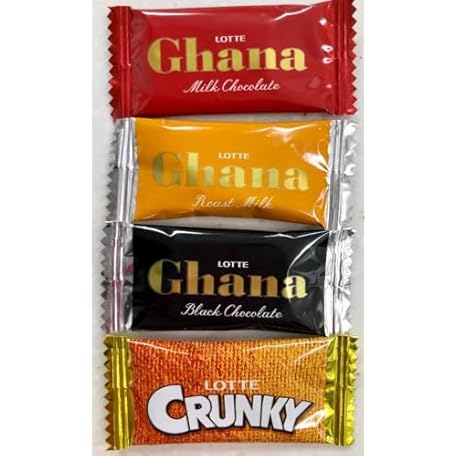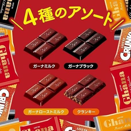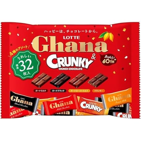 Thông tin sản phẩm Lotte Ghana Chocolate & Crunky Chocolate Share Pack (32pc) (Pack of 2), Ghana Milk, Ghana Black, Ghana Roasted Milk, Japanese Sweets Snack Dagashi, MADE IN JAPAN