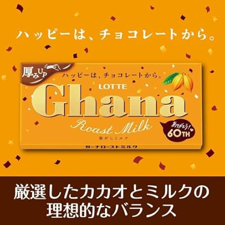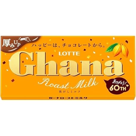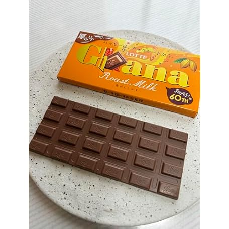 Lotte Ghana Chocolate Roast Milk Chocolat Bar 50g (Pack of 10), Japanese Sweets Rich Burnt Milk Chocolate Snack, MADE IN JAPAN