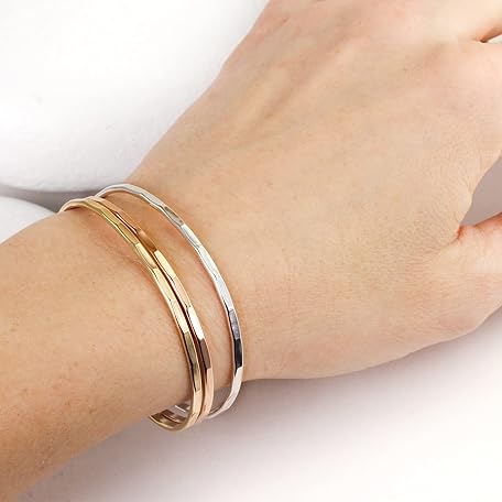 Thông tin sản phẩm LOTUS STONE JEWELRY Hammered Signature Cuff in Solid Sterling Silver, Gold, and Rose Gold Fill; Handmade and Hand Textured Bracelet for Women by Lotus Stone Design