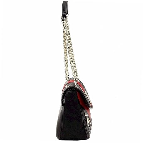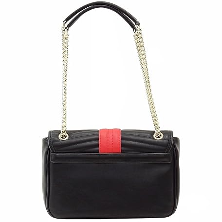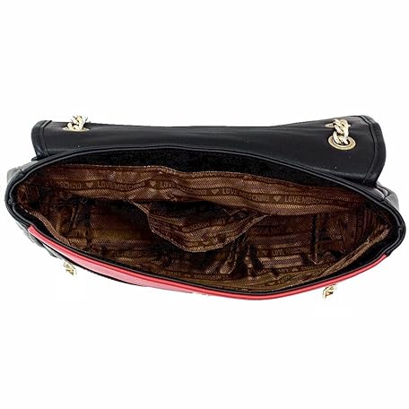 Love Moschino Quilted & Zipper Black/Red Double Chain Handle Satchel Handbag