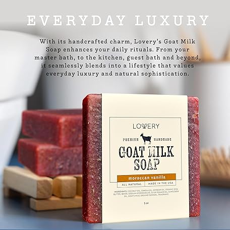 LOVERY (3-Pack Goat Milk Soap Handmade Made in USA with Organic Shea Butter Moroccan Vanilla Scent - Goats Soap Bar, All Natural Soap Bar Made with Organic Goat Milk, 3 Pack, Net 15oz.