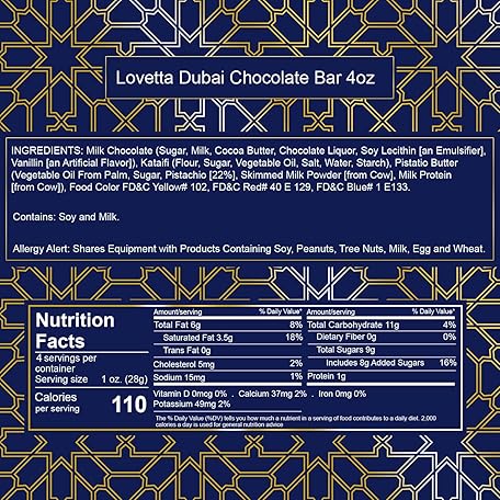 Lovetta Dubai Chocolate Bar Pistachio Knafeh - Luxury Rich Milk Chocolate, Individually Wrapped Fresh, Premium Pistachio Cream Kataifi Filling (1 Pack)