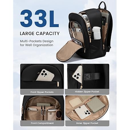 Thông tin sản phẩm LOVEVOOK Laptop Backpack for Women, 17.3 Inch Business Backpack Purse, Large Capacity Casual Daypack, Work Computer Backpack, Travel Backpack for College, Black