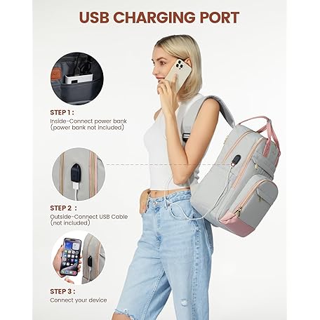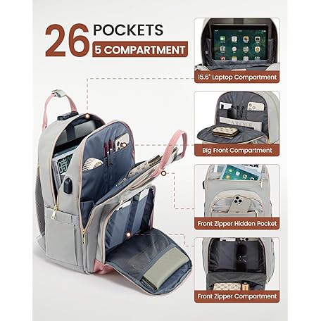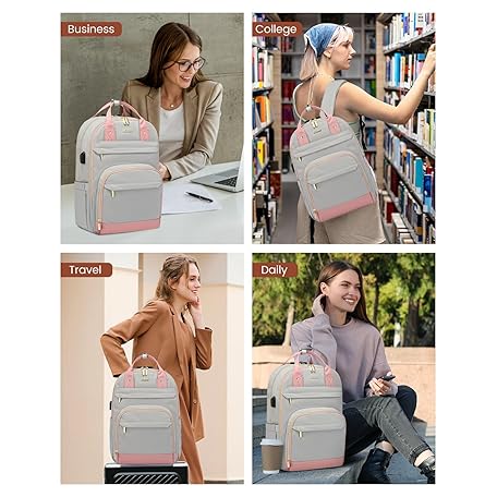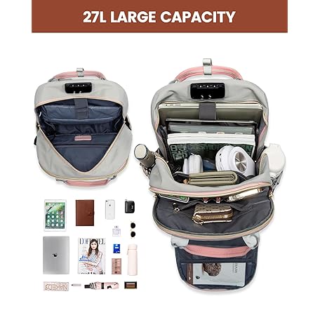 Thông tin sản phẩm LOVEVOOK Laptop Backpack for Women, Large Capacity Travel Anti-Theft Bag Business Work Computer Backpacks Purse, Casual Hiking Daypack, 15.6 Inch, Light Grey-Pink
