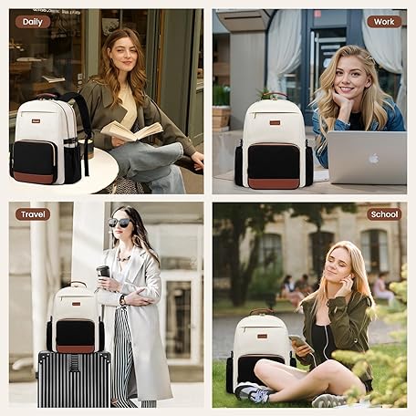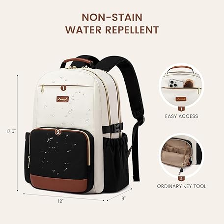 LOVEVOOK Laptop Backpack for Women with Pouch Pocket for Large Capacity Cup,15.6 Inch Laptop Computer Bag Travel Backpack Purse,Waterproof Work Business Backpack College Teacher Bags,Beige-Black-Brown