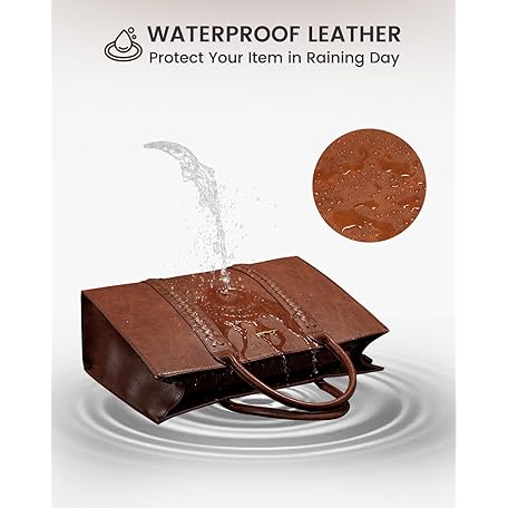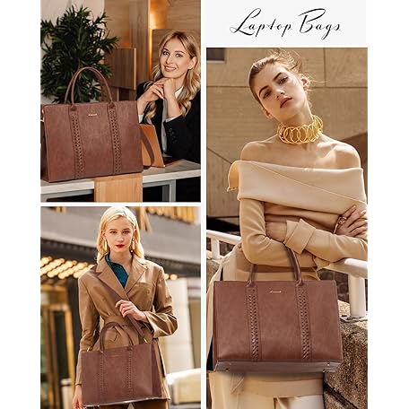 LOVEVOOK Laptop Tote Bag for Women, Vintage Leather Work Bag With Cup Holder, Waterproof Computer Purse, Professional Briefcase Office Shoulder Handbag, 15.6 Inch, Brown