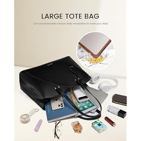 Thông tin sản phẩm LOVEVOOK LOVEVOOK Laptop Tote Bag for Women, Work Bags Laptop Bag Teacher Tote Bag, Leather Computer Bag Large Purses Handbag Professional Briefcase, Black, Fits 15.6 Inch Laptop, Black