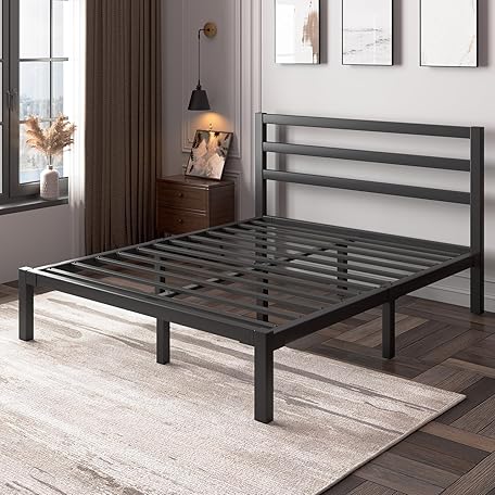 LoVinson Full Size Bed Frame, Heavy Duty Platform Bed Frame with Strong Metal Foundation,Under Bed Storage,Mattress Foundation,No Box Spring Required,Easy Assembly, Black