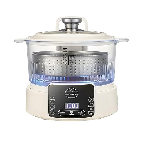 Low Carb Rice Cooker,Multifunction Smart Rice Cooker - 4H Keep Warm,Digital Display,Timer & Reservation Function,Suitable for Cooking,Simmering,Stewing,and Steaming(5L,Beige)