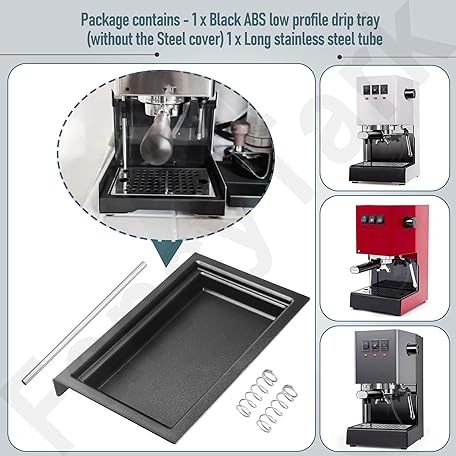 Low Profile Thin Drip Tray & OPV Spring Modification Kit w/Long Stainless Steel Tube for Gaggia Classic Pro Traditional Espresso Coffee Machine - Black
