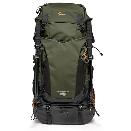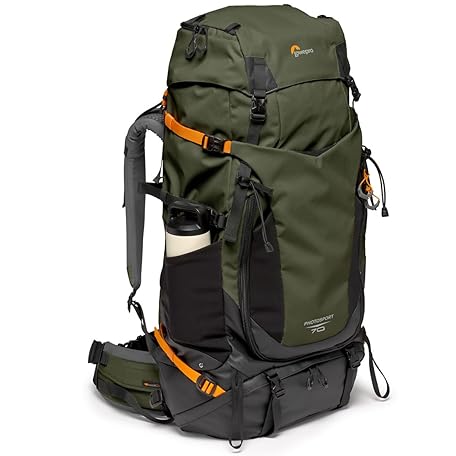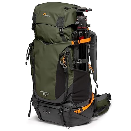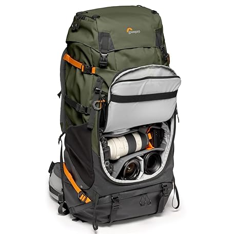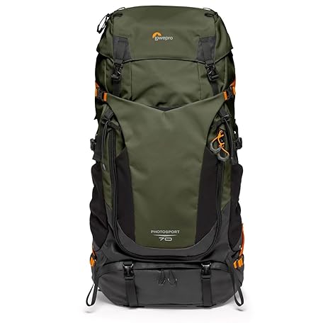 Lowepro PhotoSport PRO BP 70L AW IV with Recycled Fabrics, Camera Backpack for Reflex and Mirrorless, Front and Rear Access, Removable Camera Insert, Accessory Straps, Size M/L, Dark Grey/Green