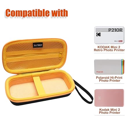 LTGEM Photo Printer Case Compatible with KODAK Mini 2 Retro 4PASS Portable Photo Printer/KODAK Mini Shot 2 Retro Instant Digital Camera, Black+Yellow(Case Only)
