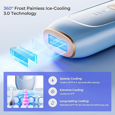 Thông tin sản phẩm LUBEX Painless Sapphire Ice Cooling IPL Laser Hair Removal Device at Home for Women & Men, 1,000,000+ Unlimited Flashes, Safe and Permanent, Alternative to Salon Hair Removal for Face, Body, Bikini