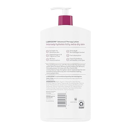 Thông tin sản phẩm Lubriderm Advanced Therapy Fragrance-Free Moisturizing Lotion with Vitamins E and Pro-Vitamin B5, Intense Hydration for Extra Dry Skin, Non-Greasy Formula, Pack of Three, 3 x 24 fl. oz