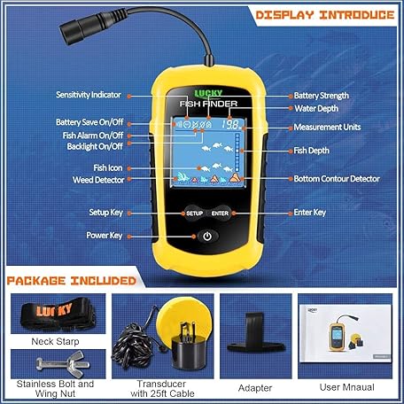 Sản phẩm LUCKY Kayak Portable Fish Depth Finder Water Handheld Fish Finder Sonar Castable Kayak Boat Fishfinder Transducer Fishing LCD Display FFC1108 đang được bán với giá ưu đãi là $46.8591 tại nước Mỹ.