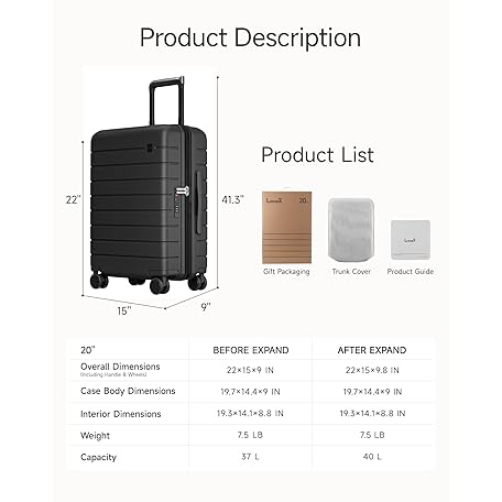 • LUGGEX Carry On Luggage HUP3, Accelerate Access with DiHook, Handy Pouch, 20 inch Expandable Hard Shell Suitcases with Spinner Wheels (HX-Core)
