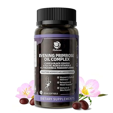 Lukaree Evening Primrose Oil Complex for Women – Hormone Wellness with Cold-Pressed EPO, 10% GLA, Sage, Fulvic Acid, L-Theanine – Supports Cyclical Balance, Mood, Skin & Immune Health, 90 Softgels