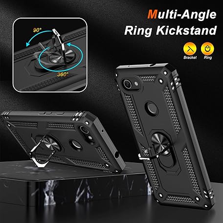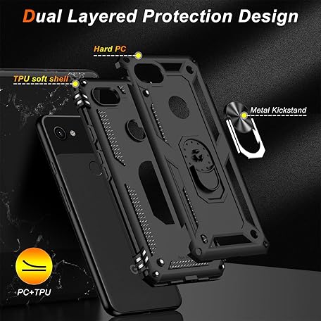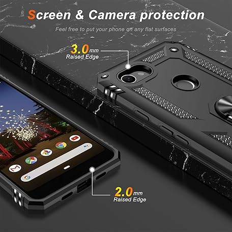 LUMARKE for Google Pixel 3A XL Case with Screen Protector,Pass 16ft. Drop Tested Military Grade Protective Phone Cover with Magnetic Ring Kickstand Compatible with Car Mount Holder Black