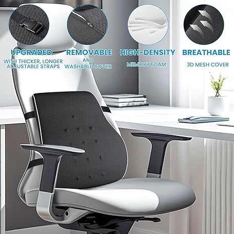 Thông tin sản phẩm Lumbar Support Pillow for Office Chair, Office Home Essentials,Stocking Stuffers,Back Support Pillow for Car, Chair Cushions,Back Pain Relief Improve Posture,Mesh Cover Double Adjustable Straps