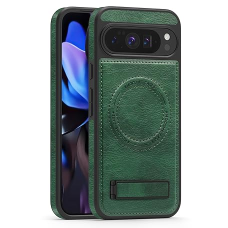 Lunivop for Google Pixel 10 Pro XL Case Leather [Compatible with Magsafe Wireless Charging] Magnetic Cover Stand Funda para Google Pixel 10 Pro XL 6.8 '' 5G 2025 Rugged Best Phone Cases Green