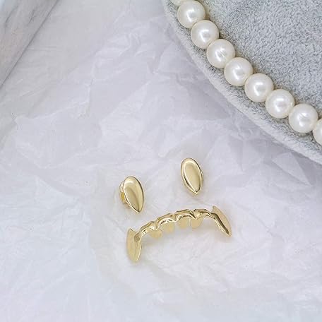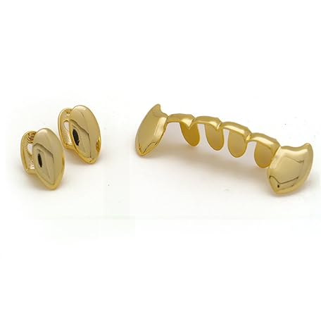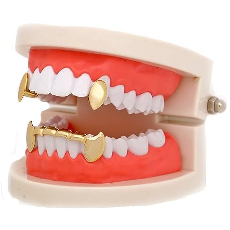 Sản phẩm LuReen 14k Gold Vampire Dracula Teeth Grillz 2pc Single Fangs and 6 Bottom Grillz Set for Halloween Costume Cosplay đang được bán với giá ưu đãi là $13.0691 tại nước Mỹ.