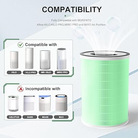 Luripid Air Purifier Filter Replacement, Compatible with Afloia KILO, KILOPLUS, KILOPRO, MIRO, MIRO PRO and MORENTO MR-Kilo, Kalo Air Purifier, 2 Pack (Green-pet Care Filter)