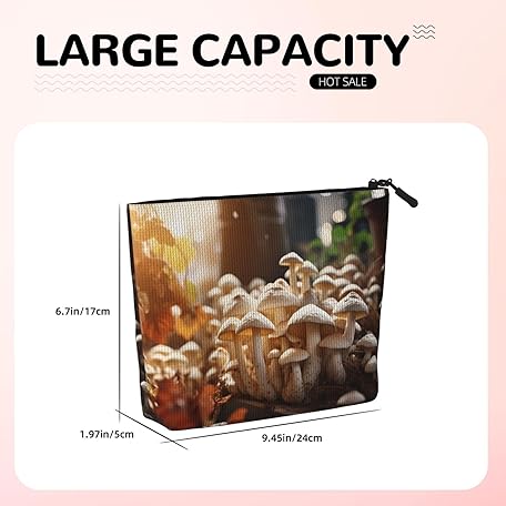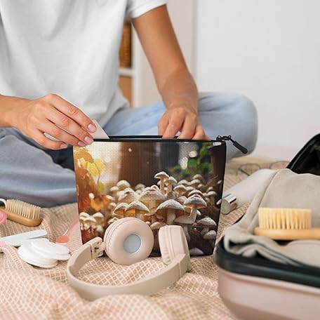 Lush mushroom Makeup Bag for Women - Lightweight Travel Cosmetic Bag with Zipper Closure - Ideal Makeup & Toiletry Storage