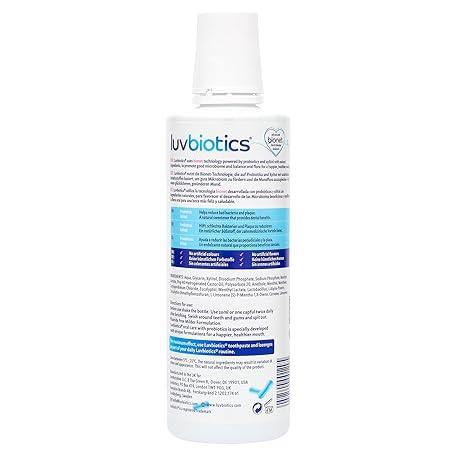 Thông tin sản phẩm Luv Biotics Alcohol & Fluoride Free Mouthwash with Oral Probiotics, Xylitol for Fresh Breath, Gum Health & Oral Microbiome Support-500m