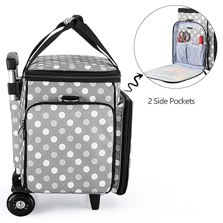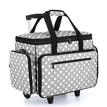 Thông tin sản phẩm LUXJA Sewing Machine Case with Detachable Dolly, Rolling Sewing Machine Tote with Removable Bottom Pad (Fits for Most Standard Sewing Machines), Gray Dots (Patented Design)