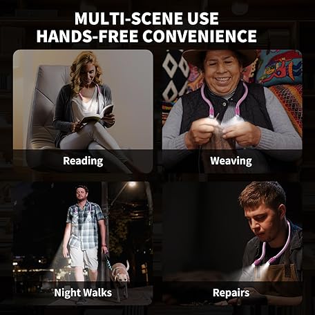 LUXJET Neck Reading Light & Book Light for Reading in Bed - Hands Free, 3 Colors & 6 Brightness Levels, 360° Flexible Arms, 80-Hour Rechargeable - Reading, Knitting, Camping, Repairing