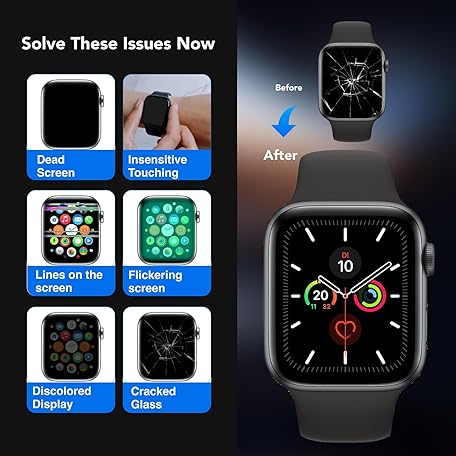 LW Mail-in Repair Service with Original OEM Pull Screen for Apple Watch Series 6 (44mm) Replacement Screen LCD Display Touch Digitizer Full Assembly A2292 A2294 A2376 (Repair Service, Not DIY Kit)