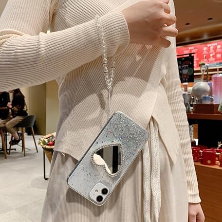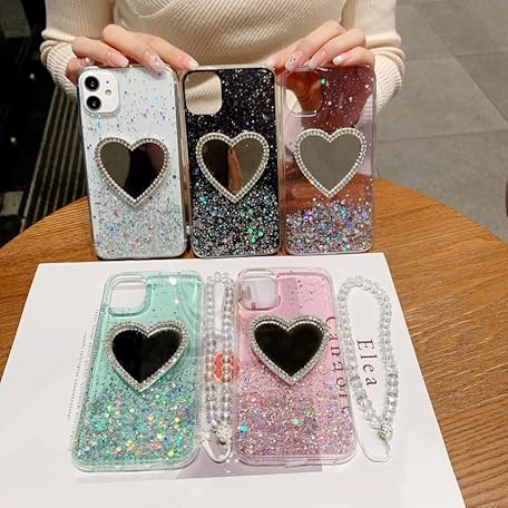 LXXZBC for Samsung Galaxy A10S Mirror Case Luxury for Women Girls Kids Design Cute Bling Glitter Love Fancy Soft Phone Cover with Crystal Wrist Strap,Black